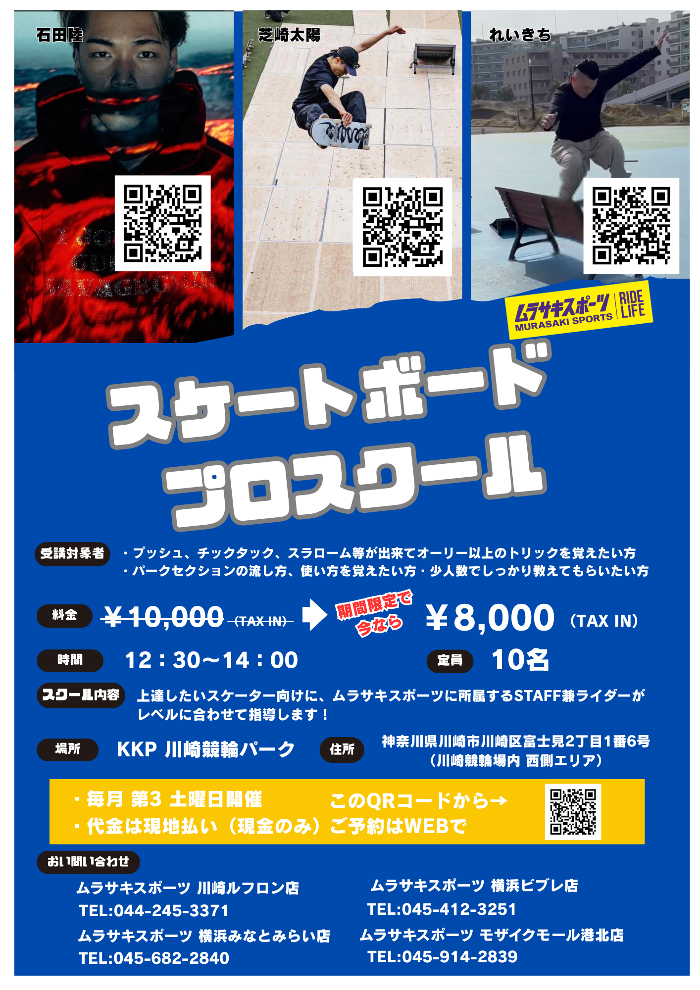 スケートボードプロスクール中上級者向け ムラサキスポーツ川崎ルフロン店