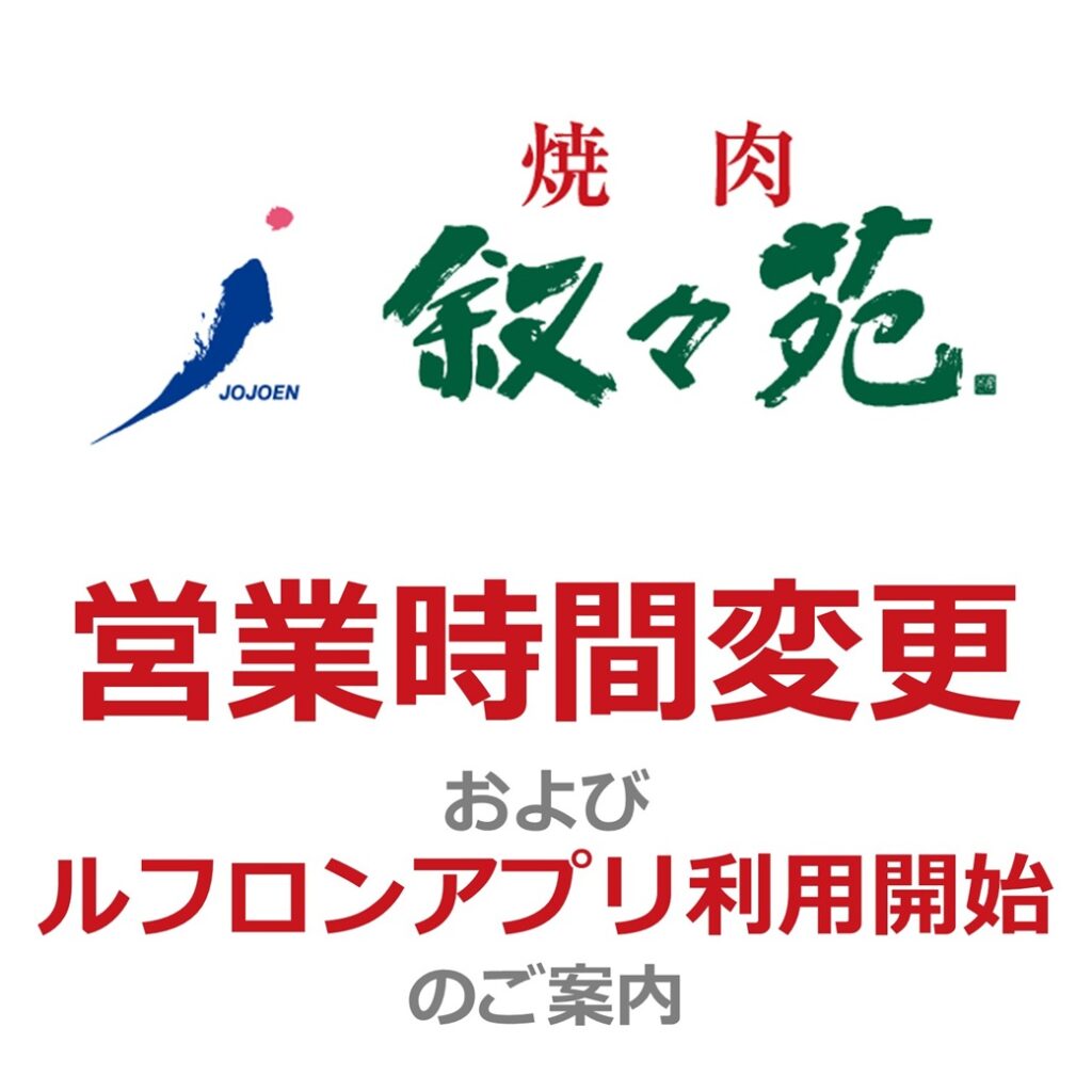 10F叙々苑 営業時間変更およびルフロンアプリ利用開始についてのご案内